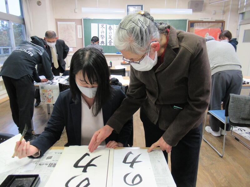 上学年の毛筆を森合小学校の清野喜代志先生、