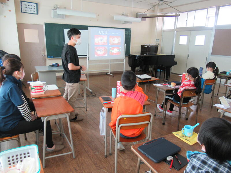子どもたちも真剣に話を聞き、正しく歯を磨くことができました。