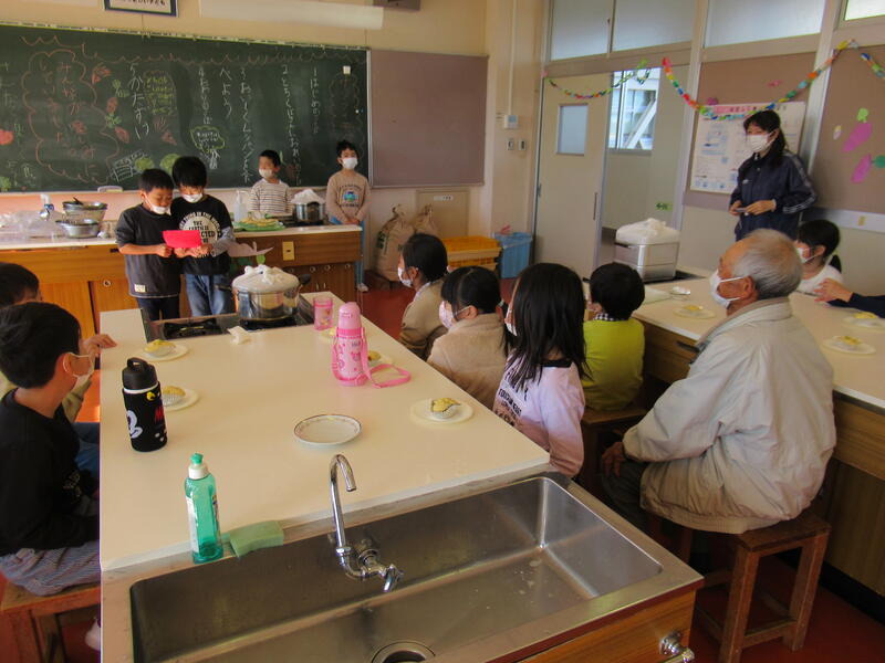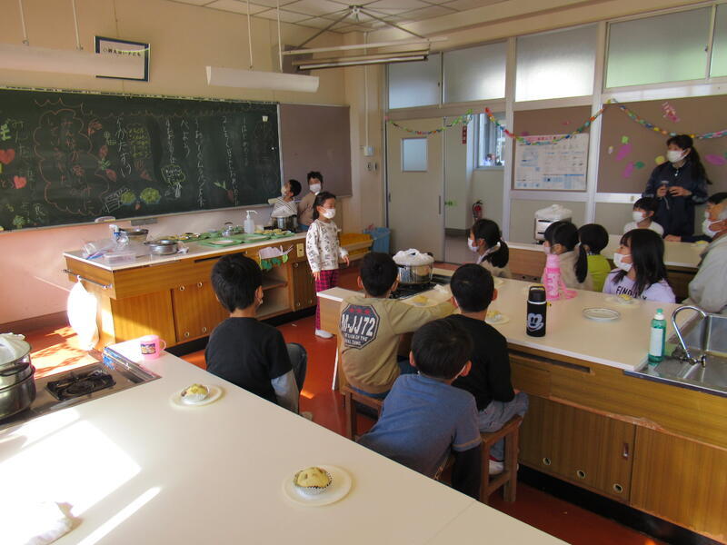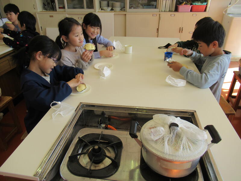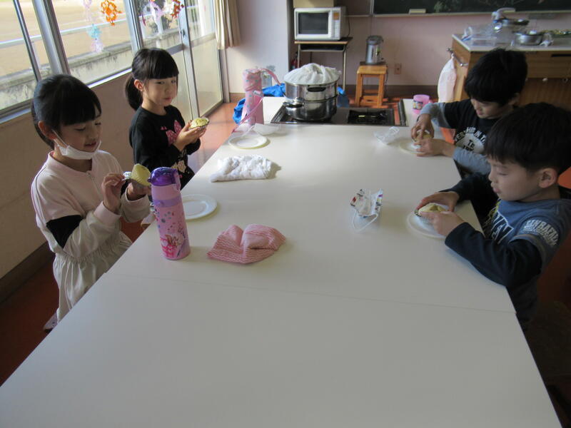 みんなでさつまいも入り蒸しパンをおいしくいただきました。
