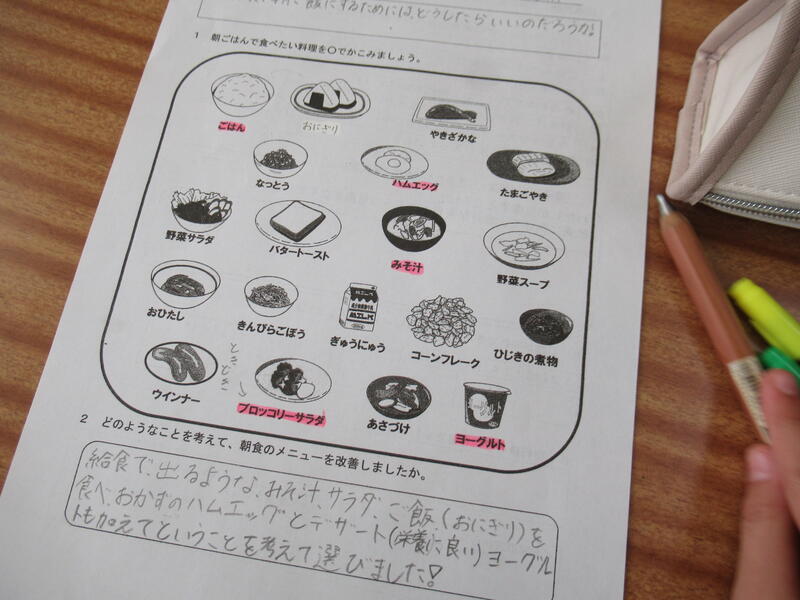 栄養バランを考えて朝食をとることの大切さを学びました。