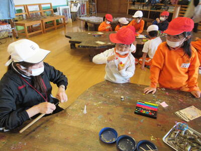 2021年11月19日 16時17分本日、生活科の学習の一環として、1・2学年合同で、霊山こどもの村で校外学習を行いました。ワークショップでは、1年生は、木の実や押し葉を使ってカード作り、2年生は、小枝を使って首飾りを作りました。小春日和の中、外でお弁当を食べたり、落ち葉で遊んだり、楽しい1日を過ごしました。なお、今回の校外学習では、福島県森林環境交付金を活用し森林学習を行いました。