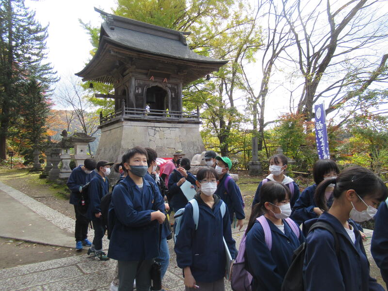 秋晴れの中、紅葉を楽しみながら見学をしました。