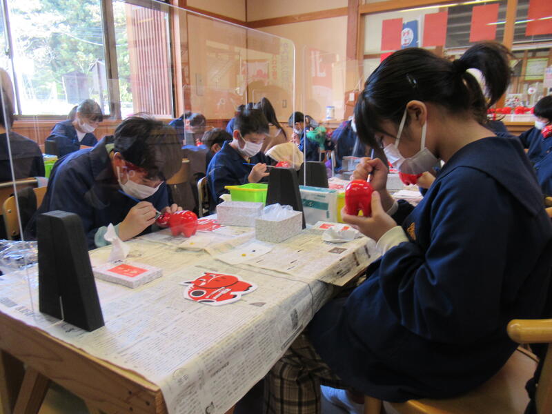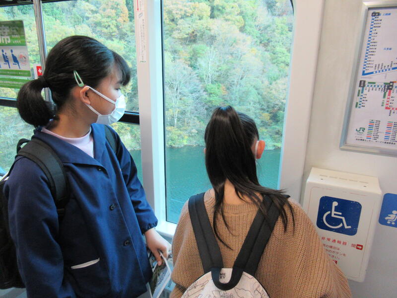 4日は、柳津の円蔵寺、斎藤清美術館を見学し、赤べこ絵付け体験(足湯)をして、只見線に乗車しました。