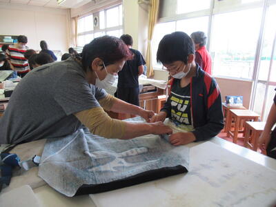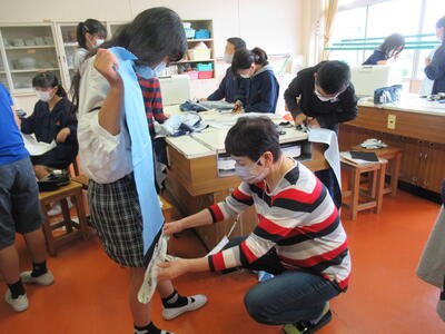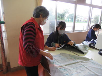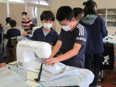 北信地域学校協働事業学校支援ボランティアの4名の方々に来校していただき、5年生がエプロン製作の授業を行いました。布の裁断の仕方やアイロンのかけ方、ミシンの使い方など、丁寧にご指導いただきました。ご協力ありがとうございました。