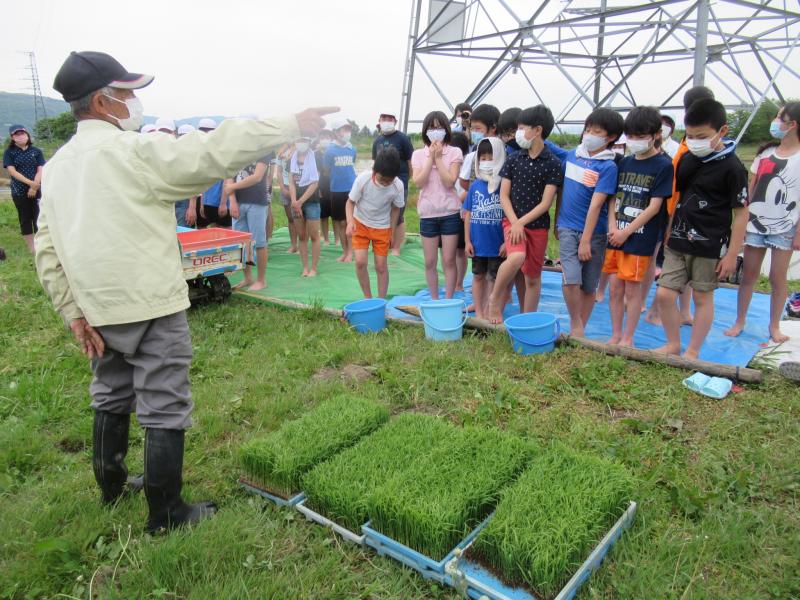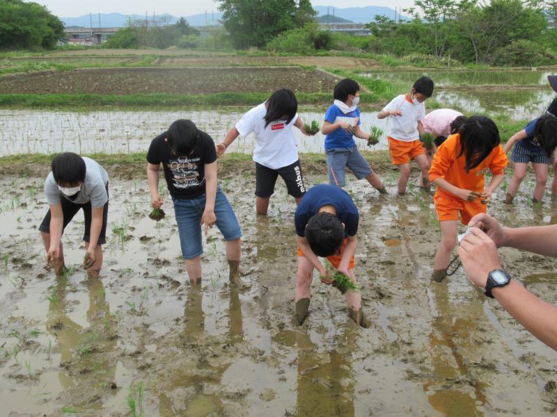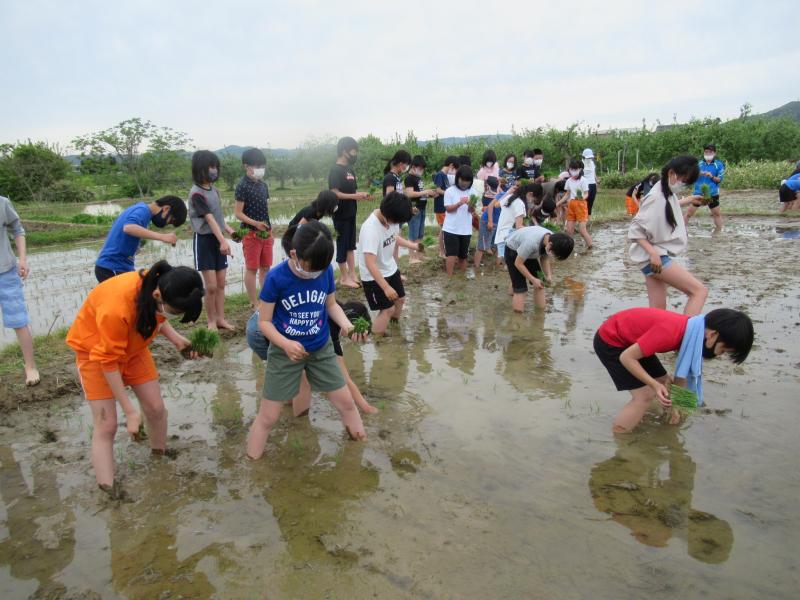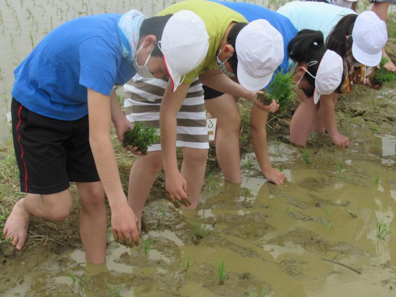 5月7日(金)総合的な学習の時間で、5・6年生が田植えをしました。