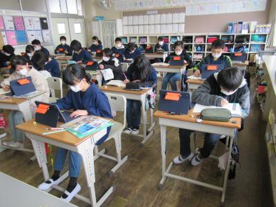 2021年2月10日 08時11分余目小学校にも、一人1台のタブレットが導入されました。