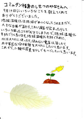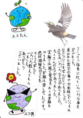 宿泊学習の最後の活動としてコミュタン福島を訪れた5年生たちも、学校に戻って早速メッセージカードを作りましたので紹介します。