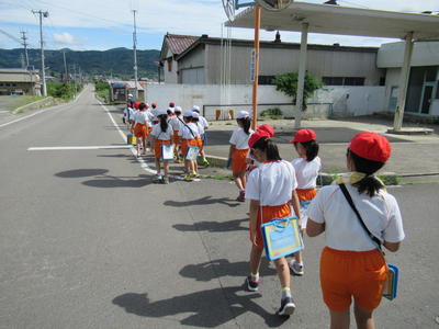 今日は朝から天気が良かったので、3年生が予定していた「町たんけん」に出かけました。