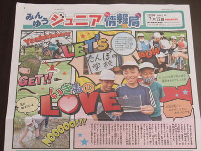 2020年7月13日 15時58分 先日行われた5年生の「田んぼの学校」の様子が、7月12日(日)発行の、福島民友新聞社「みんゆうジュニア情報局」に取り上げられました。