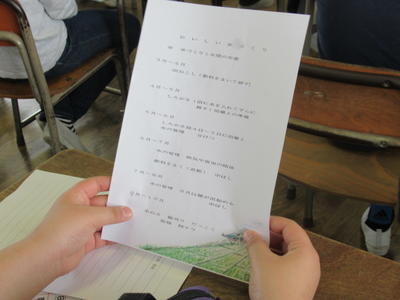 Tさん直筆の田園風景の絵が入った素敵な資料をもとに、まずはお米の大切さについて学びました。
