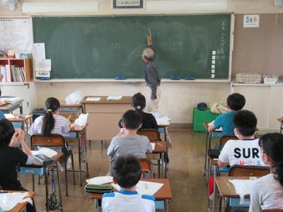 今日も田んぼの学校長のTさんにおいでいただき、5年生が米づくりの学習を行いました。