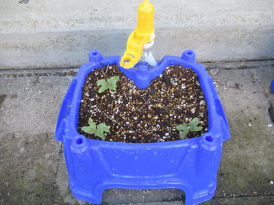 1年生が植えたアサガオの種が早くも芽を出しました