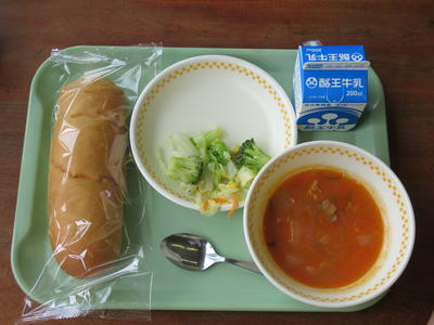 今日の給食ですが主食が「ごはん」という学校が多いようですが、余目小学校は月曜日は「パン」です!