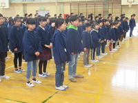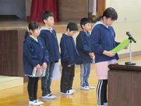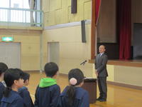 始業式では、校長先生のお話の後、各学年の代表が冬休みの思い出と3学期の目標を発表しました。