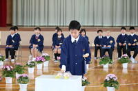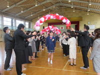 3月23日に卒業証書授与式が行われました。これまで教職員が準備を行い、この日を迎えました。主役の卒業生が全員元気に登校してくれたのが、何よりうれしかったです。在校生や来賓のいない式となり、例年通りとはいきませんでしたが、保護者の方も退場の場面で花や手でアーチをつくって参加するなど、心温まる卒業式でした。無事にできてよかったです。卒業生のこれからのご活躍を祈念いたします。