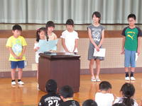 最後に、各学年の代表1名が、夏休みの思い出と2学期のめあてを発表しました。めあてをもって、明日からまた元気に登校して下さい。