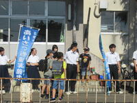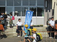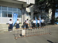 北信中学校の生徒と先生が、あいさつ運動にきてくださいました。小中連接事業の一つとして、継続されています。北信中学校の生徒は、余目小学校の卒業生です。北信学習センターの職員の方にも来ていただきました。