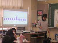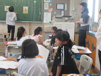 3年生教室で、国語科の研究授業が行われました。子供たちは、先生の発問に、つぶやき、発言して、頭をフル回転させていました。まとめの後には、1時間の学びの「振り返り」をしました。タブレットを活用し、単元として毎時間振り返ります。子供の考えをグラフ化するなど、考えを可視化し、思考を働かせる工夫ある授業でした。