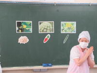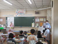 2024年6月6日 18時00分北部給食センターの所長さんと栄養教諭さんが、給食の時間に2年生教室を訪問しました。所長さんからは、給食センターが毎日の給食を作っている話をいただき、栄養教諭さんからは、先日の授業の学びをもとに、さらに、新しいことを教えていただきました。令和8年度には、新しい給食センターがが開設されるそうです。おぼん洗いの施設ができるとのことで、大変ありがたいです。給食配膳員さんの配属も検討していただけそうです。子供たちは、心を込めて自分たちの給食を作ってくださっている方々に出会い、感謝の気持ちを持つことができました。現場に足を運んでくださった所長さん、栄養教諭さん、ありがとうございます。