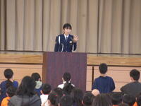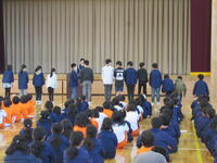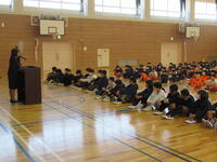 福島北警察署の巡査部長さんと見守る会の皆さんにお越しいただき、交通教室を開催しました。交通教室は、家庭の交通安全推進委嘱状交付式、見守る会顔合わせ、通学班会議という内容で行いました。交通ルールを守ることは手段です。究極の目的は、「命の学習=自分の命は自分で守る」ことです。そのために、どうするのか・・・を学び、考え、行動に・・・命、体を、失ってからではどうにもなりません。