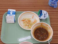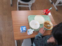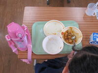 4月12日(金)、1年生の給食は、2日目。今日はカレーでした。教室を訪ねると、「カレーが辛いです。」「私は、辛くないです。」「牛乳は、毎日出るんですか?」など、楽しそうに、もりもり食べていました。
