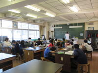 広くてきれいな余目小学校の校庭です。5校時目、体育科では50m走、理科では校庭の植物の観察などが行われていました。