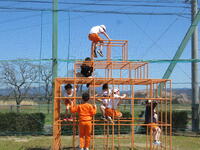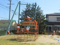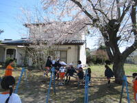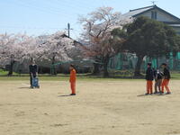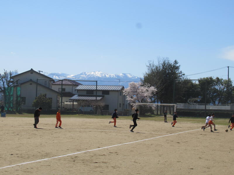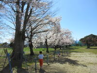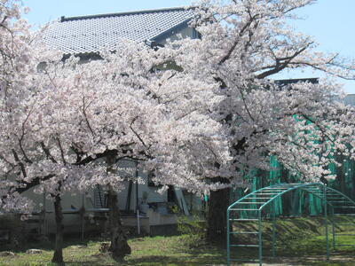余目小学校の校庭は、広くて気持ちがいいです。青空、桜、大きな木・・・素敵な環境で、のびのびと遊び、体を動かすことができます。子供たち、幸せそうです。