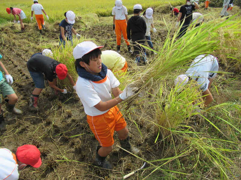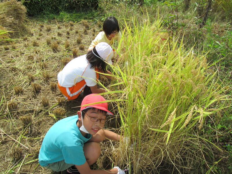 2021年9月24日 12時41分今日は、5年生の「田んぼの学校」の稲刈りでした。