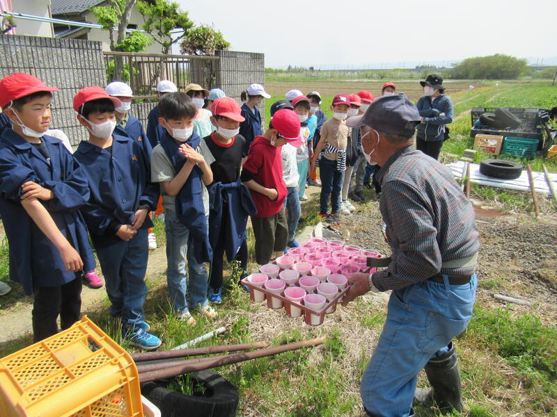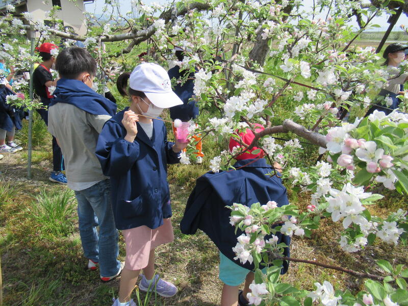 2022年4月26日 11時05分昨日、3年生の総合的な学習の時間で、リンゴの花の受粉作業を学びました。