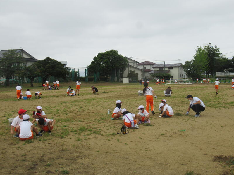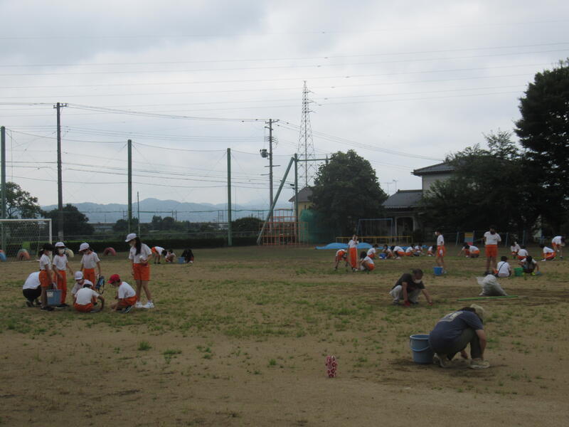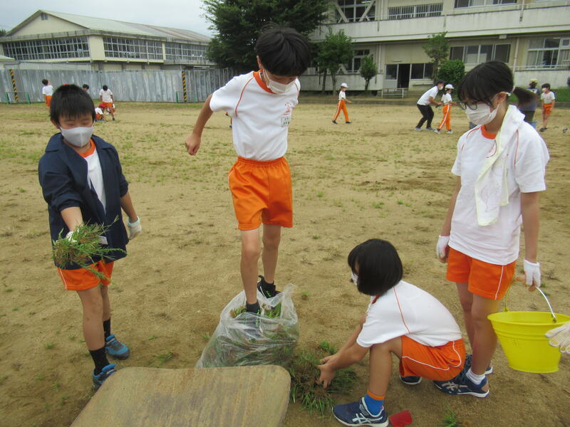 感染対策として、本日は2・4・6学年で除草を行いました。