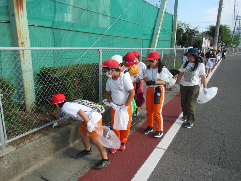 地域と学校が一緒になって学校周辺、通学路のごみ拾いをして回りました。
