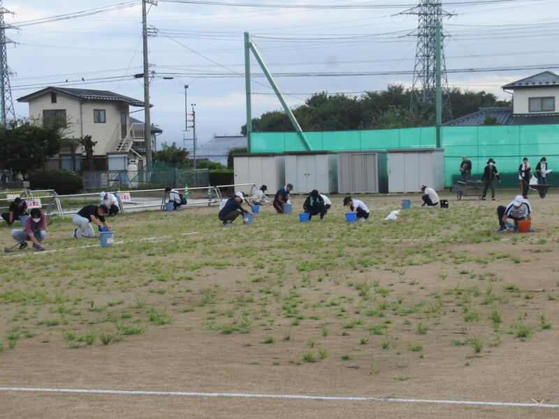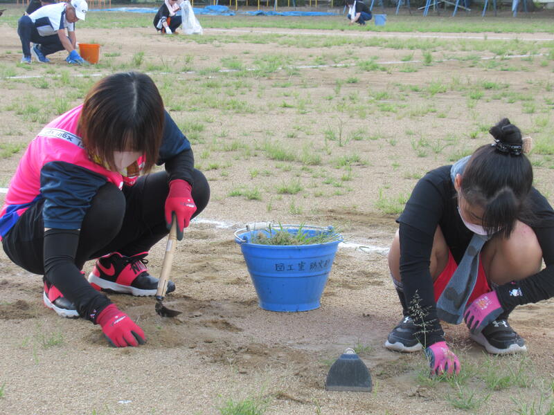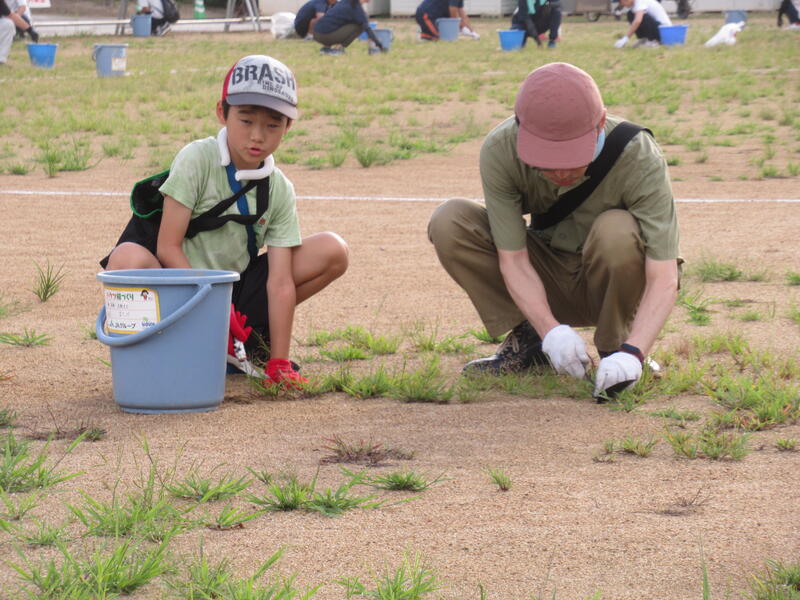 皆さんのご協力により、校庭の草もだいぶ少なくなりました。