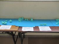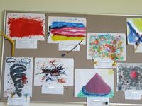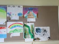 本日、午前授業! 2024年5月1日 18時05分 今日は、午前授業13:20下校でした。地域のお祭りに参加する子もいるようです。下校時の廊下や昇降口での子供たちの話し声が、弾んでいました。<校内に飾られている作品>