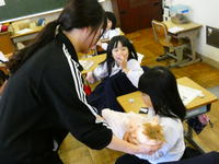 実際に生まれたての赤ちゃん(3Kg)の人形を使い、おへそから栄養をもらい成長してきたことを理解していました。