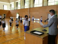 JRC登録式ではJRCの説明を担当からした後、6年生代表が校長先生に誓いの言葉を発表しました。