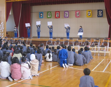 その後,6年生の代表が冬休み中の思い出や今年の抱負を発表しました。中学校生活を見据えた目標を立てて最後の小学校生活を送るという発表を堂々と行うことができました。