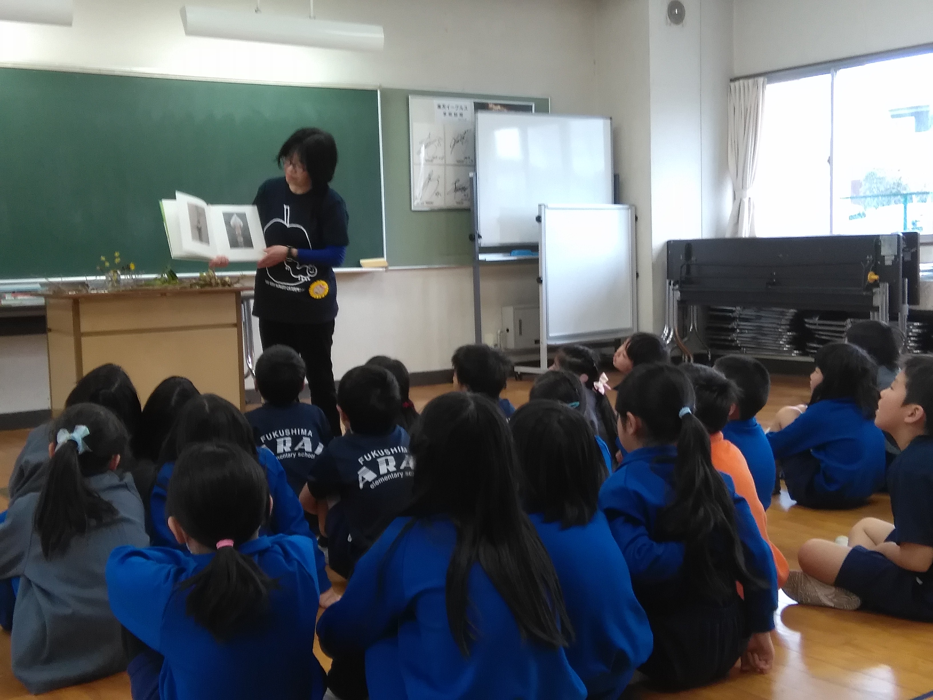 3月8日(木)に、たんぽぽの会のみなさんによるお話し会が行われ、1,2年生が参加しました。お話を聞いたり、一緒に昔遊びをしたりとても楽しい時間になりました。