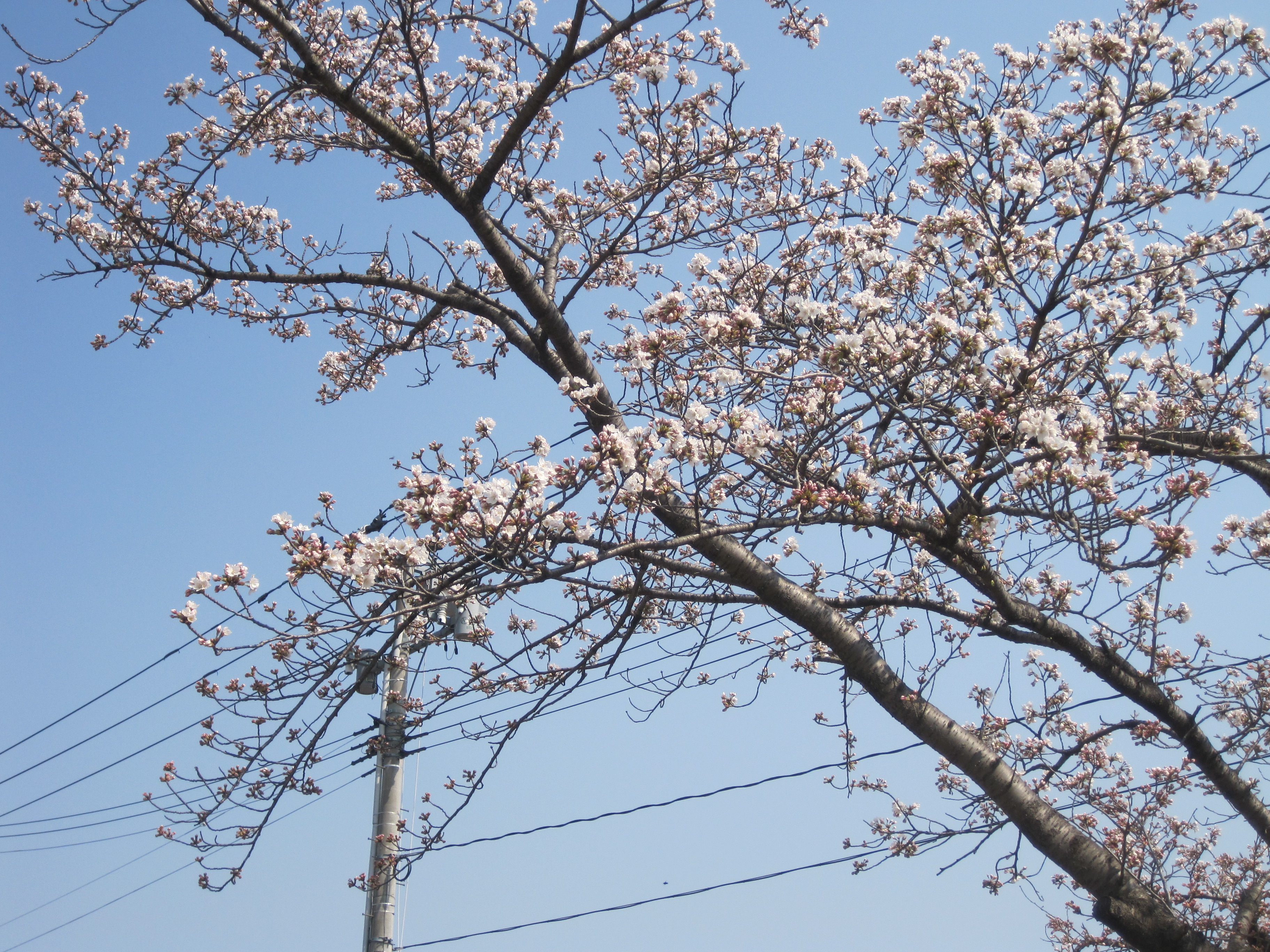 先週からつぼみが膨らみ始めた校庭の桜が、ようやく開花しました。