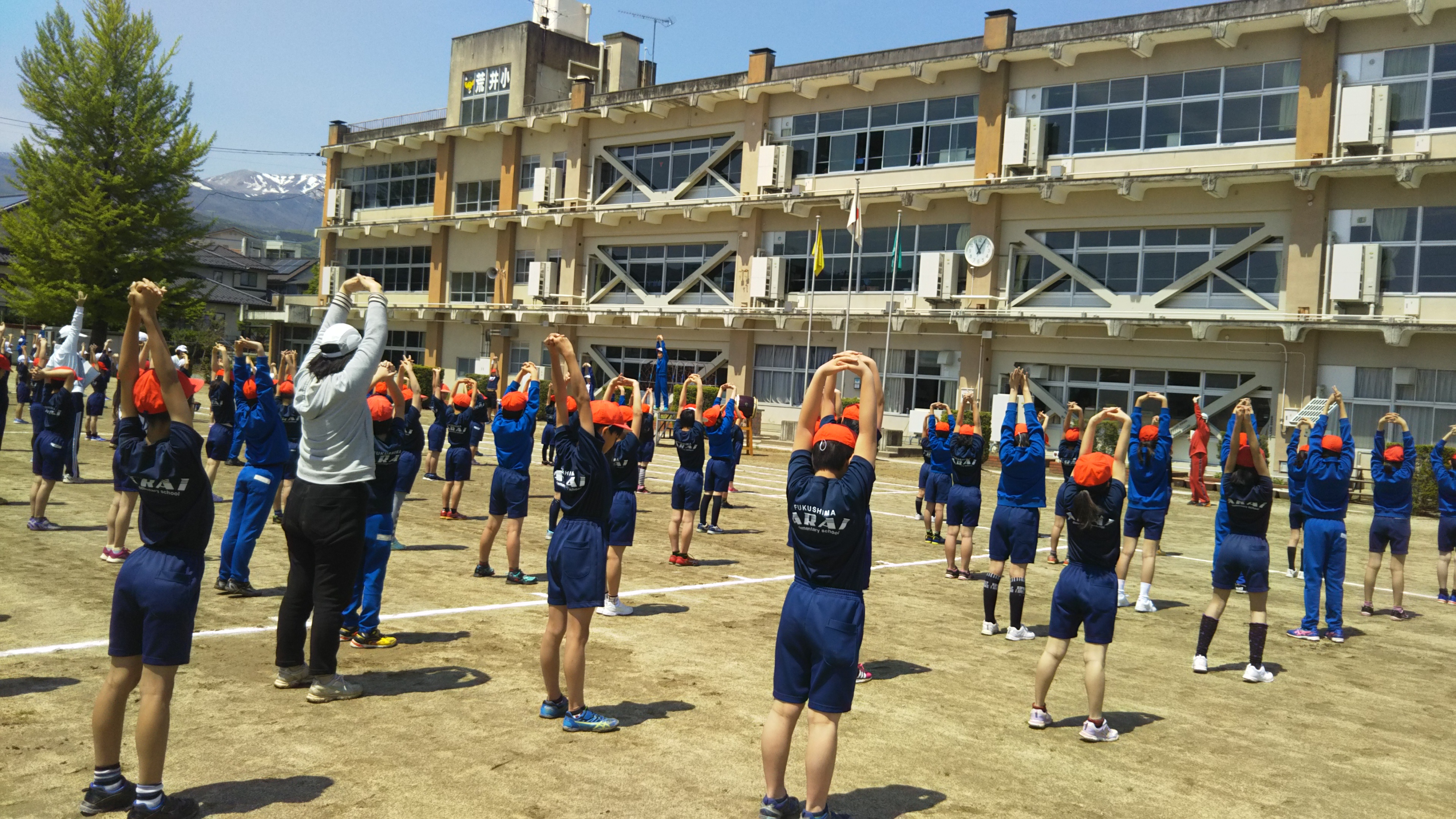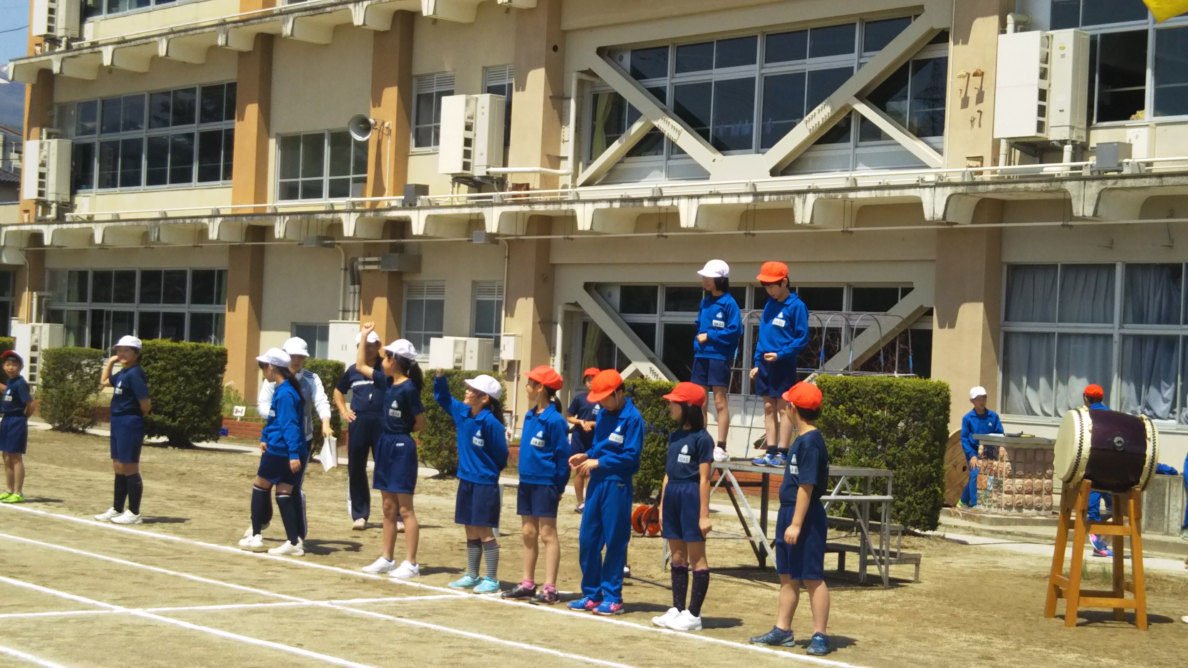 晴天の下、第1回の運動会全体練習を行いました。開会式やストレッチ運動、応援合戦の練習で、全体の流れを確認しました。1週間後の運動会の成功を目指してどの学年も一生懸命に練習していました。