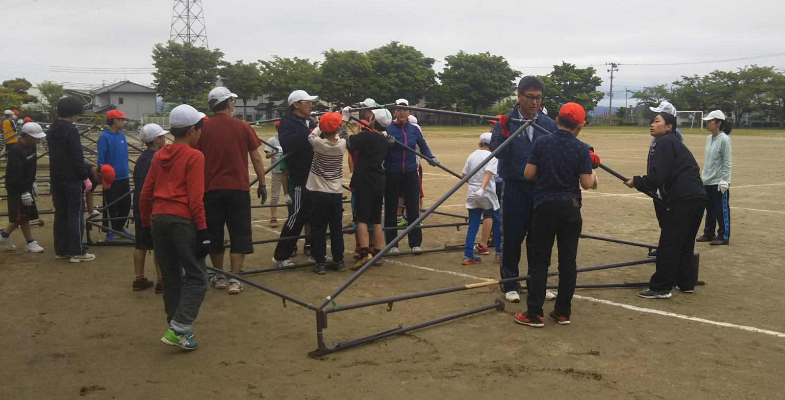 明日5月19日の運動会に向けて、5,6年生と職員が会場準備を行いました。たくさんの長机やパイプ椅子を運んだり、重いテントの柱を運んだりとみんなが力を出し合って、一生懸命準備しました。
