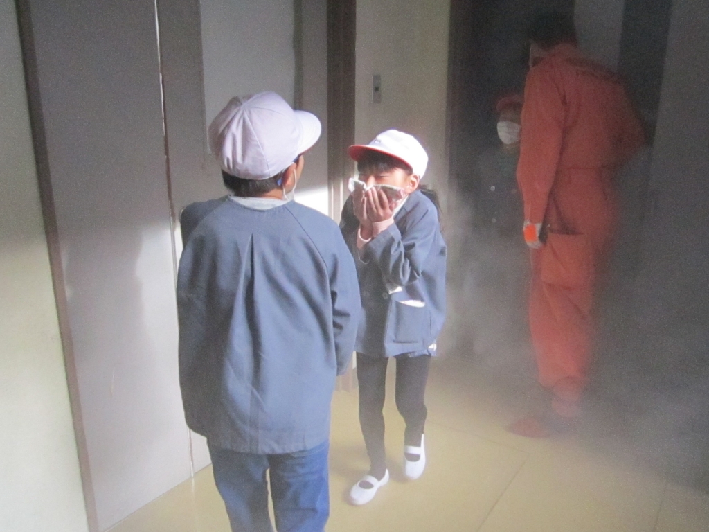 その後は,理科室を使っての煙体験を行いました。目を凝らしても30cm先も見えないぐらいの状況を体験することができ,実際の火事の際の煙の恐ろしさを実感としてとらえることができました。