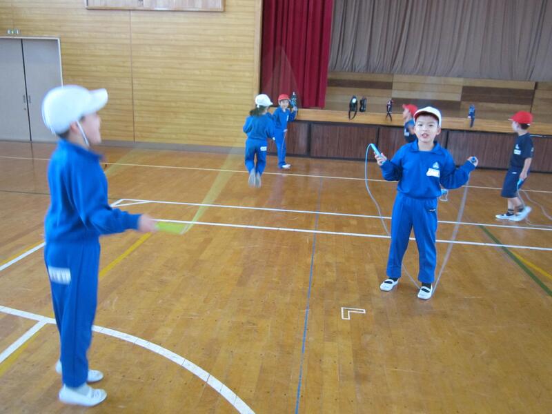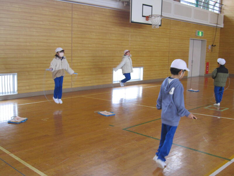 来週のなわとび記録会に向けて、どの学年も体育の時間に一生懸命練習しています。1年生の様子を見に行くと、体育館はまるで冷凍庫のよう。でも、縄とびをすると寒さも吹き飛び、元気に跳んでいます。さすが!