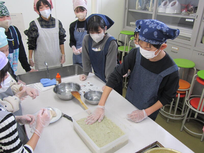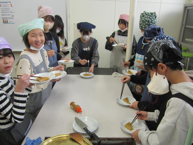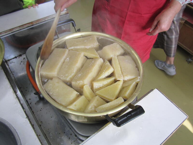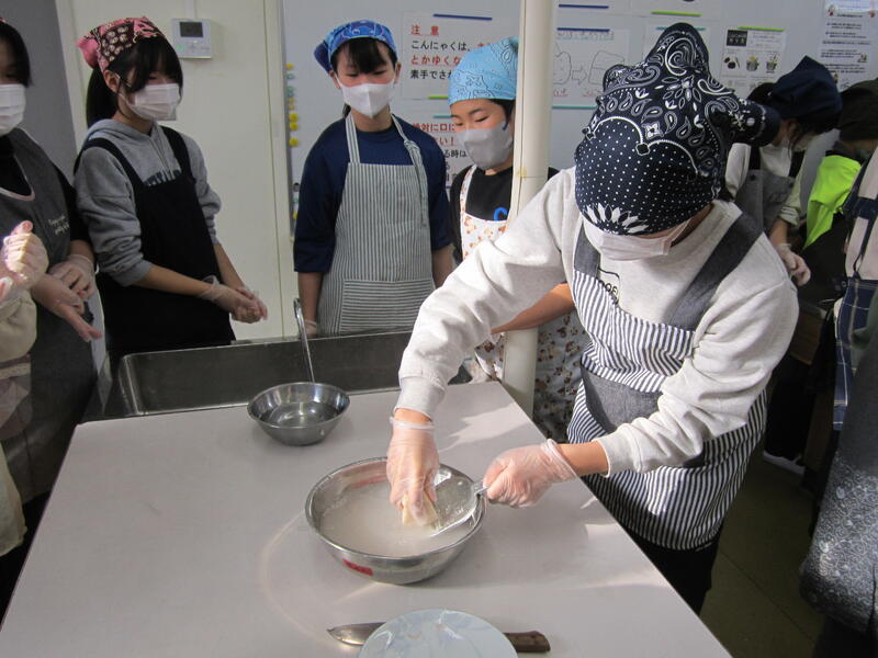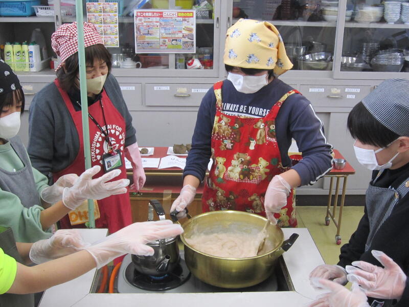 今日は、JAふくしま未来の婦人部の方が来校し、6年生と「こんにゃくづくり」をしました。みんな初めての経験でしたが、講師の先生の説明をよく聞き、上手に作ることができました。さすが6年生です。子どもたちは、普段はスーパーでしか見たことがないこんにゃくの作り方に興味津々に取り組み、手作りのおいしさに感激していました。