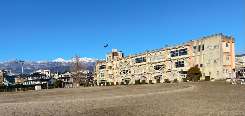 空気が澄んで素晴らしい天気。空も吾妻山もきれいです。学校に向かって飛んでいる鳥もいいですねー。