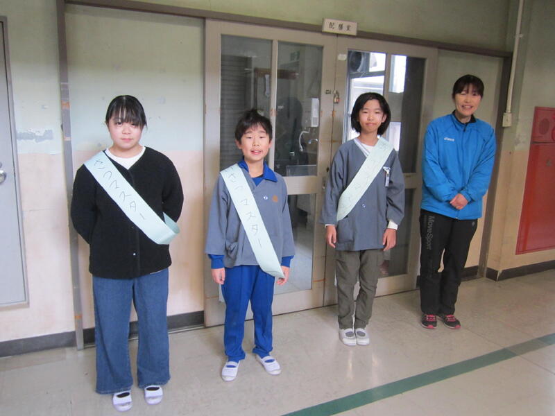 今週、児童会のみなさんが「あいさつマスター」として、朝登校してくる友達に廊下で元気に「おはようございます」とあいさつ運動を行いました。低学年の子どもたちは、おにいさん、おねえさんがあいさつをする姿を見て、自分たちもまねをしようと、いつも以上にすれ違う友達や先生方に元気な声であいさつをしていました。「あいさつマスター」は今日でおしまいですが、明日以降もあいさつを進んで行うように意識できるといいですね。