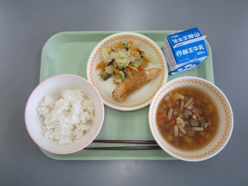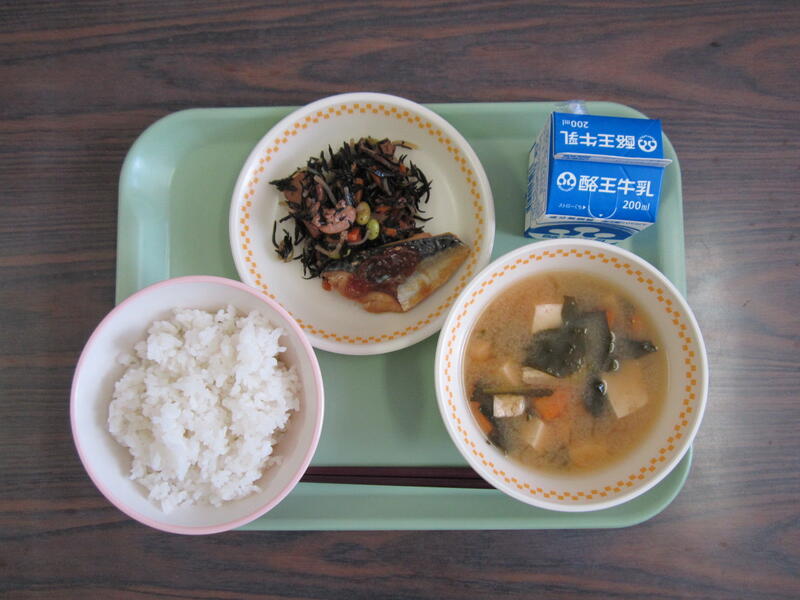 ごはん 豆腐とほうれん草のみそ汁 さばのおかか煮 ひじきの磯煮 です。急に寒くなり、体調を崩す子どもが増えてきました。なんでも食べて、丈夫な体をつくろう