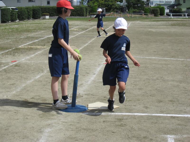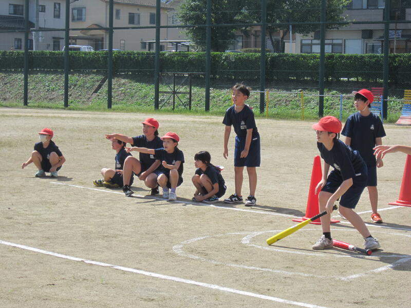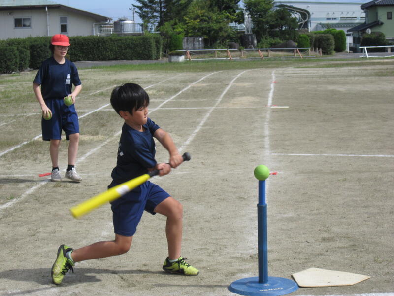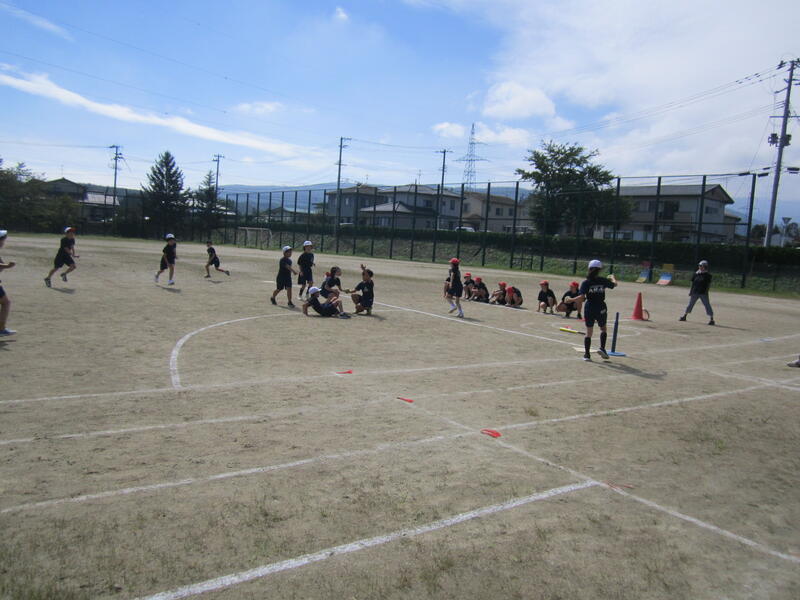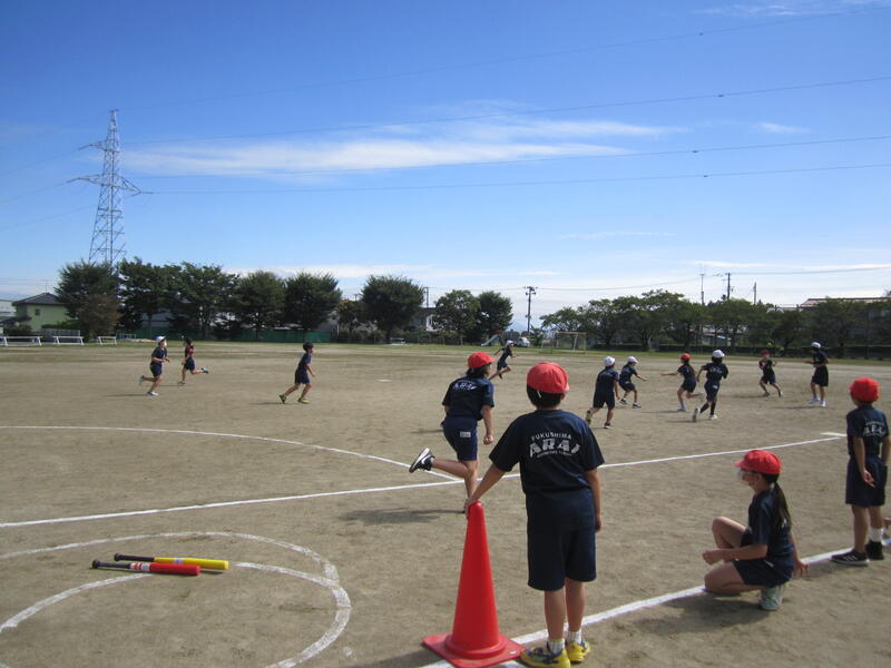 今日から10月。1年間の折り返しです。久しぶりにいい天気。4年生の体育は「ティーボール」です。