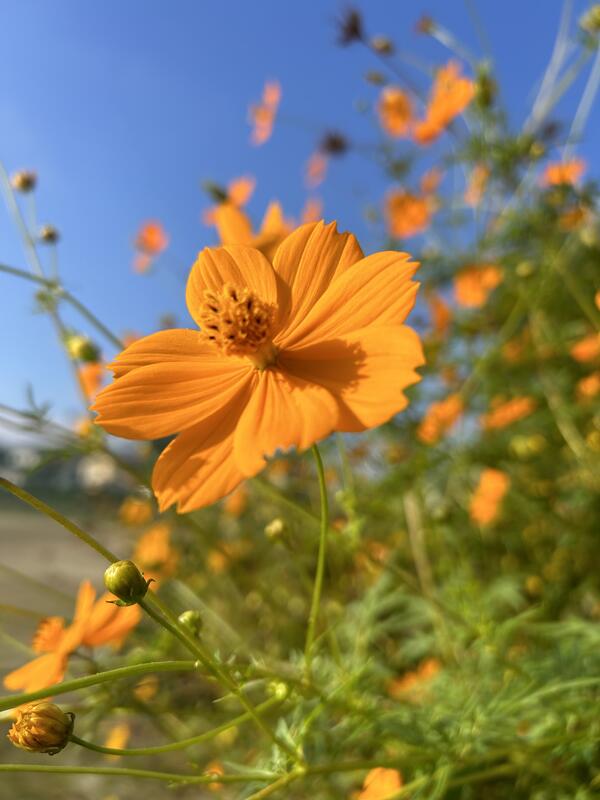 学校のコスモスの花もきれいに咲いてます