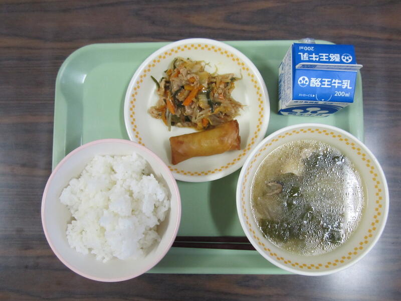 ごはん トックスープ 春巻き 豚キムチ炒め です。おいしくいただきました。