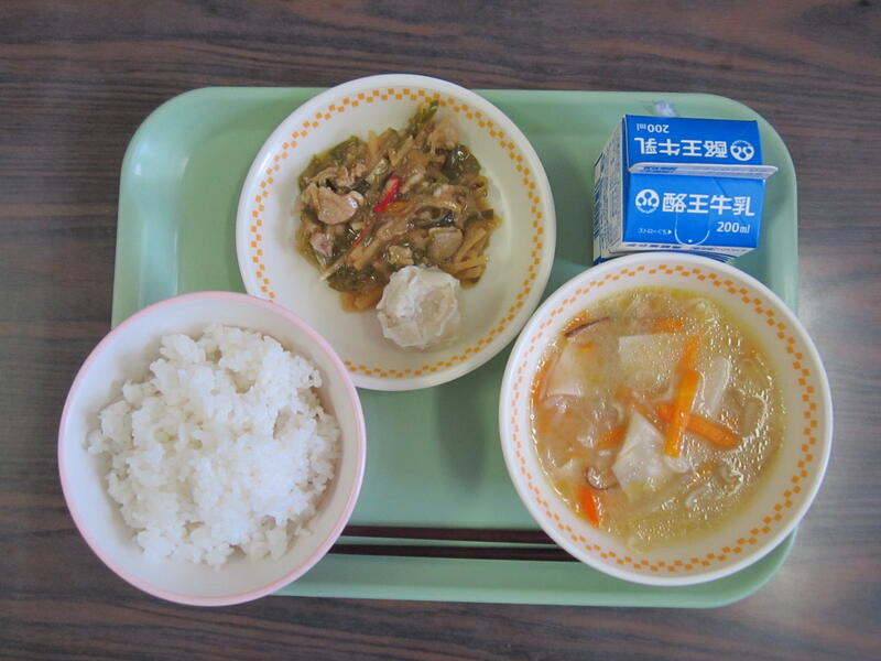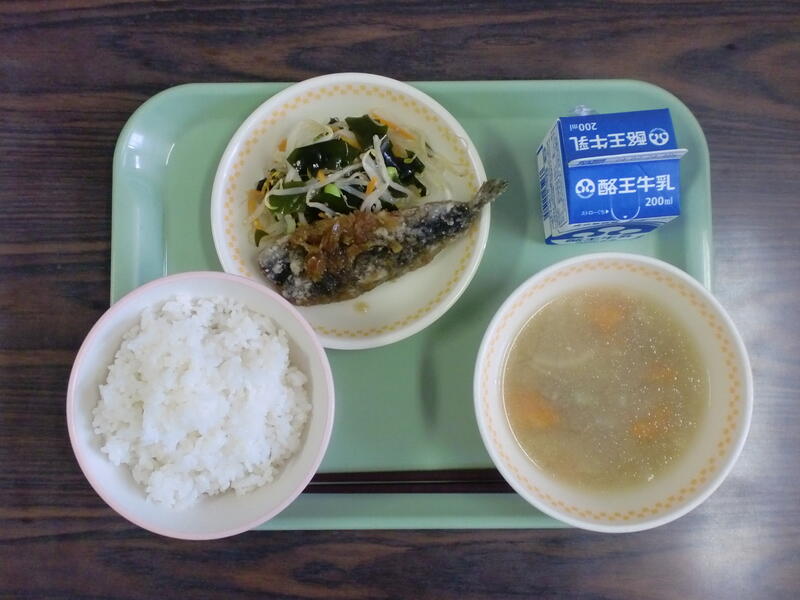 ごはん 豚汁 いわしの南蛮漬け 和風あえ です。おいしくいただきました。